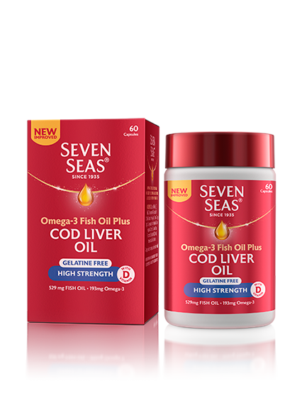 Seven Seas Cod Liver Oil is a high-strength supplement designed to support everyday good health. It is specially formulated to help maintain healthy bones and muscles. These capsules are free from artificial colors, gluten, wheat, yeast, and preservatives. With a rich natural source of Omega-3, including EPA and DHA, Seven Seas Cod Liver Oil provides essential nutrients for overall health. It supports a healthy immune system, inflammatory response, and heart function.